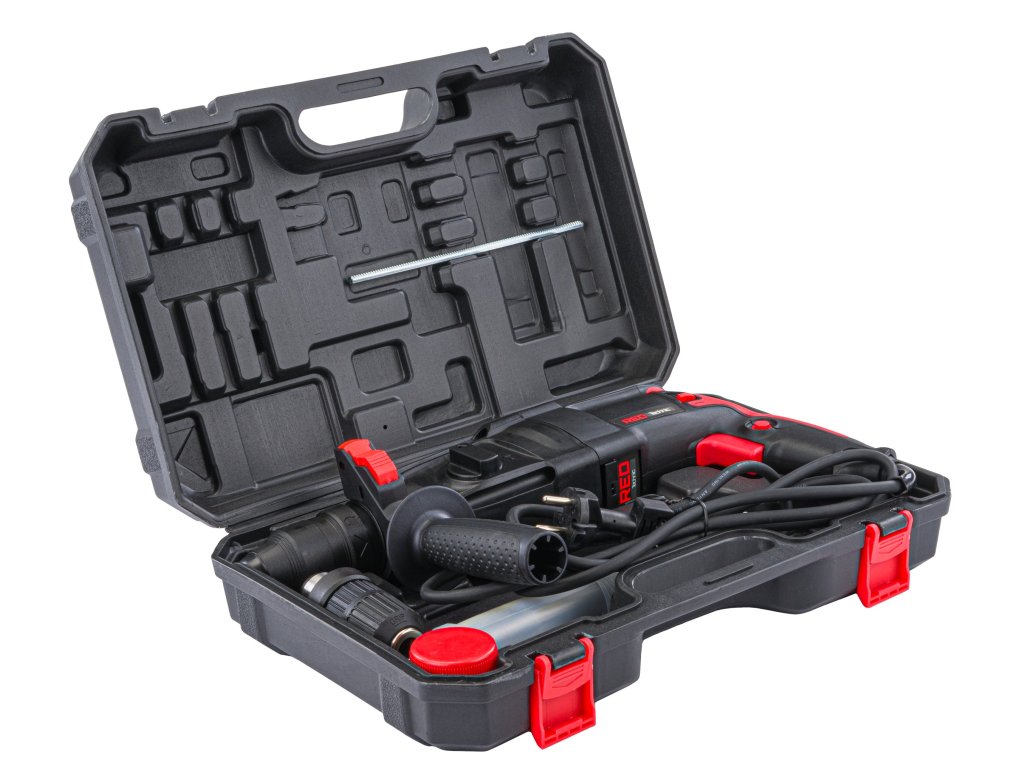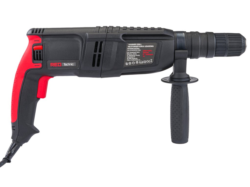 Kombinirano kladivo znamke technic RTMWU0094 z močjo 2600W je opremljeno z vpenjalno glavo vrtak+ in zamenljivo samozapiralno vpenjalno glavo.