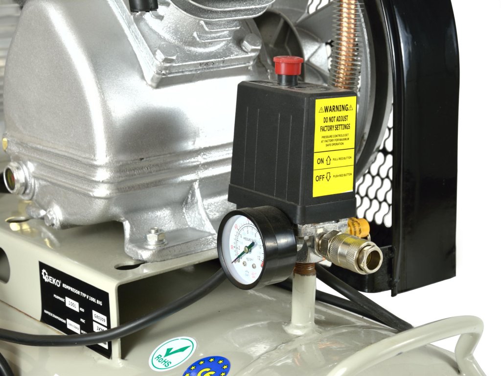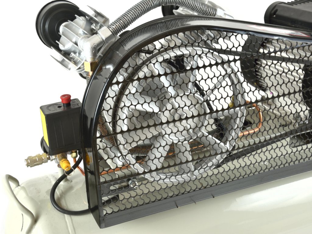 Oljni kompresor z zmogljivim motorjem moči 3 HP in prostornino rezervoarja 100 litrov. Ta kompresor je opremljen z regulatorjem tlaka, ki omogoča nastavitev vrednosti tlaka v rezervoarju glede na vaše potrebe.