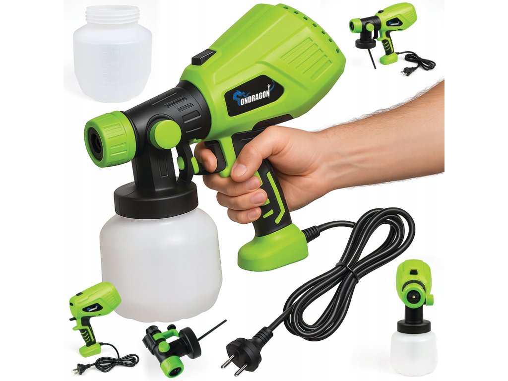 Barvniški agregat ONDRAGON z močjo 650 W predstavlja zanesljivo in enostavno orodje za domačo in polprofesionalno uporabo. Omogoča hitro, enakomerno in čisto nanašanje barve na stene, pohištvo, les ali druge površine – vključno z neravnimi ali težko dostopnimi mesti. Zaradi vgrajenega kompresorja ni potrebna nobena zunanja naprava.