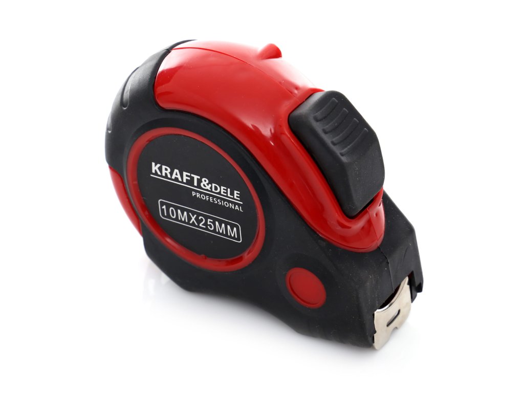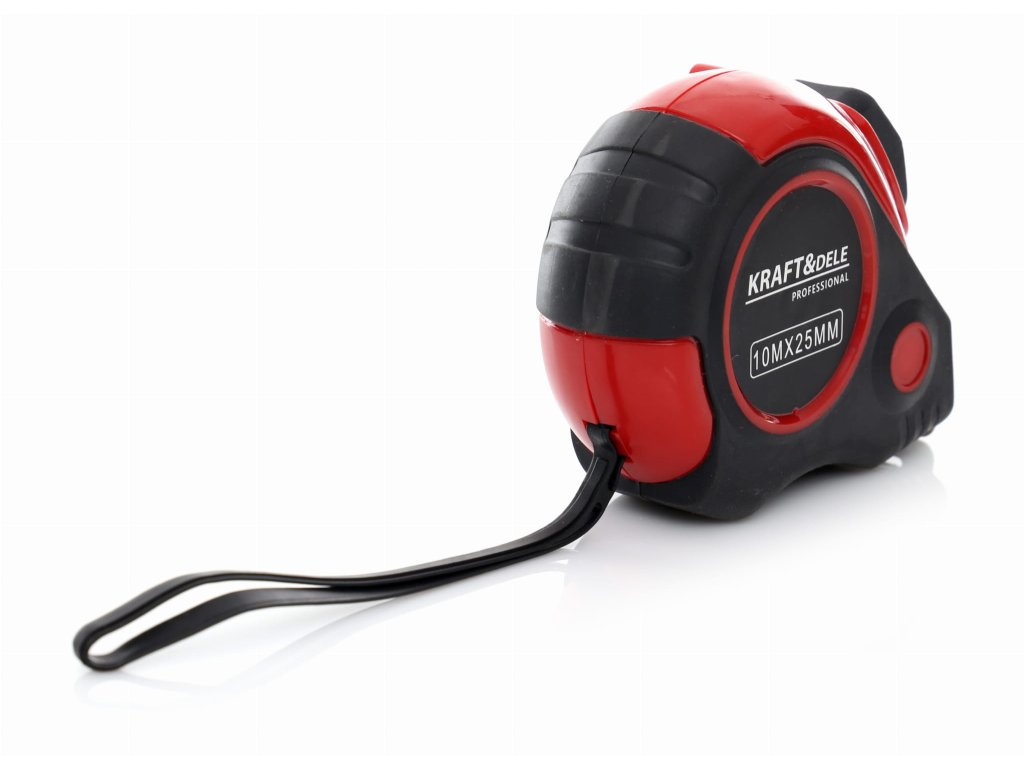 Profesionalni merilni trak znamke Kraft&Dele. Na voljo v različicah, ki se razlikujejo po dolžini in širini traku.