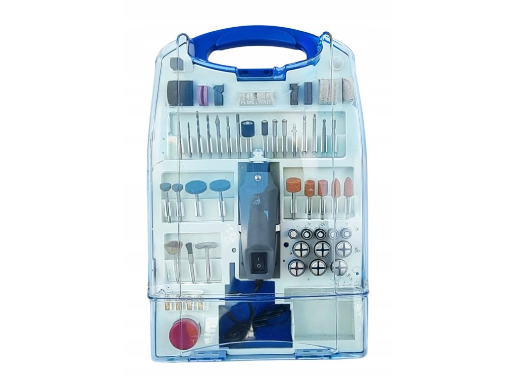 Večfunkcijski mini brusilnik z močjo 350W in regulacijo vrtljajev 8000–16000 vrt./min je idealno orodje za brušenje, rezkanje, poliranje in vrtanje. Ergonomska konstrukcija in kompaktna zasnova zagotavljata udobje pri delu. Vsebuje 110 kosov dodatkov, ki razširjajo možnosti uporabe tega univerzalnega orodja, in sicer ne samo za les, plastiko, ampak tudi kovino in keramiko. V paketu je tudi praktičen transportni kovček za enostavno shranjevanje in prenašanje.