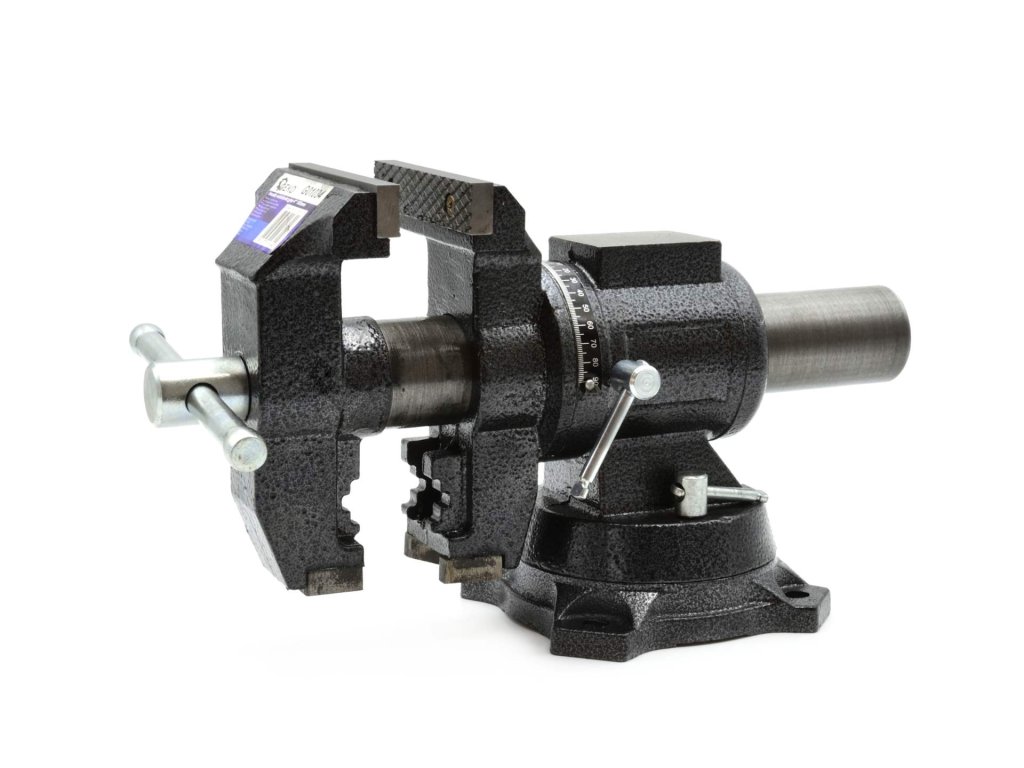 Večfunkcijski primež z vrtenjem za 360° vam nudi največjo vsestranskost zaradi možnosti vrtenja v navpični in vodoravni ravnini. Ta primež je idealen za uporabo v ključavničarskih delavnicah, delavnicah splošne mehanike in drugih strokovnih okoljih. Kaljene čeljusti s križnimi utori zagotavljajo trdno pritrditev kateregakoli predmeta, kar povečuje njegovo uporabnost.