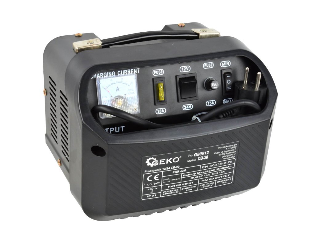 Polnilec avtomobilskih baterij 12/24V CB-20 G80012 je idealna rešitev za polnjenje svinčeno-kislinskih baterij (STD) z napetostjo 12V ali 24V. Ta tip baterij se pogosto uporablja v osebnih, dostavnih in tovornih avtomobilih. Polnilec je opremljen z vgrajeno varovalko, ki ščiti napravo pred nepravilno priključitvijo polov in kratkim stikom.