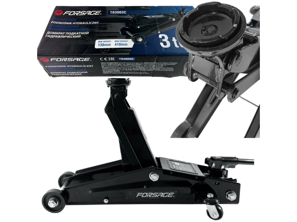 Njegova konstrukcija temelji na principu ročice z hidravličnim pogonom, ki deluje v horizontalni osi v območju od 130 mm do 410 mm. Značilnost dvigalka je njegova nizka začetna višina, zaradi katerega ga je mogoče potisniti pod skoraj vsako vozilo — še posebej uporabno pri vozilih z znižanim podvozjem (športna, tuning). Nepogrešljiv v avtoservisih, pnevmatiki servisih in servisnih delavnicah.