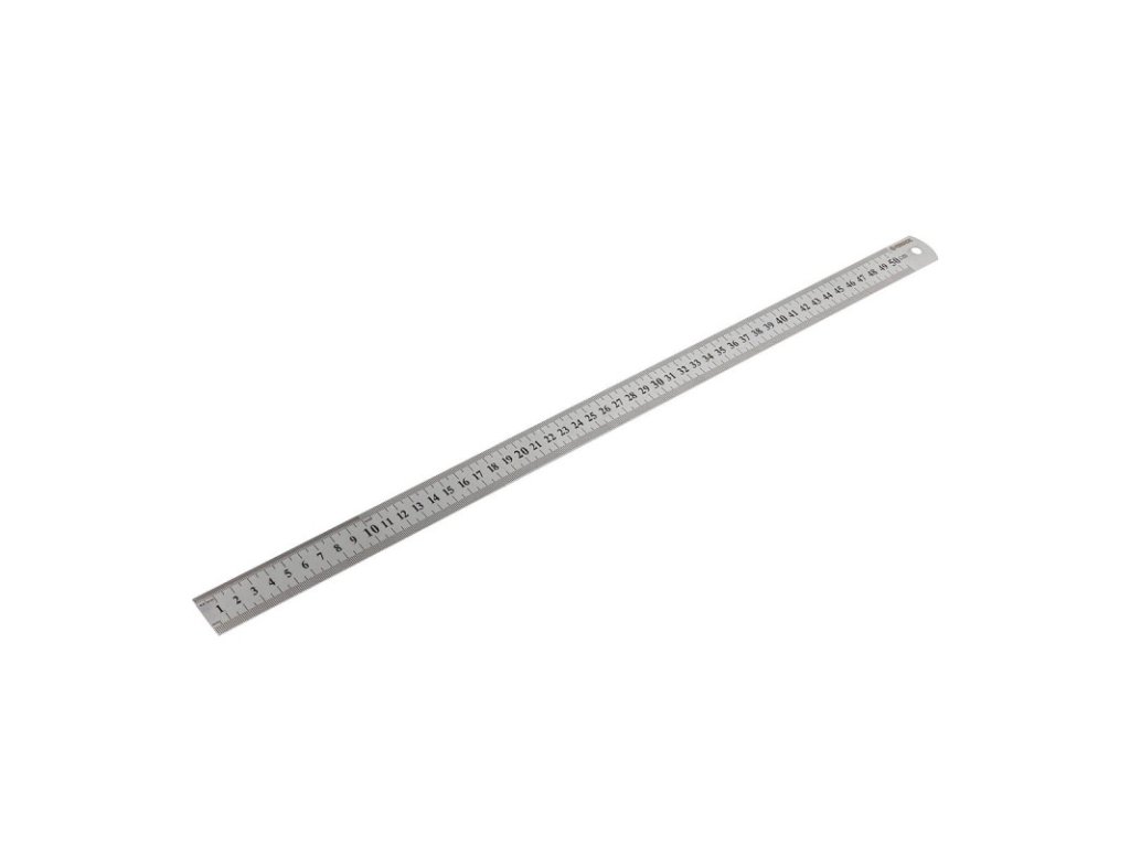 Delilne oznake so nanesene na obeh robovih ravnila, kar olajša merjenje in delo z orodjem. Ravnilo je dodatno opremljeno z luknjo za obešanje.