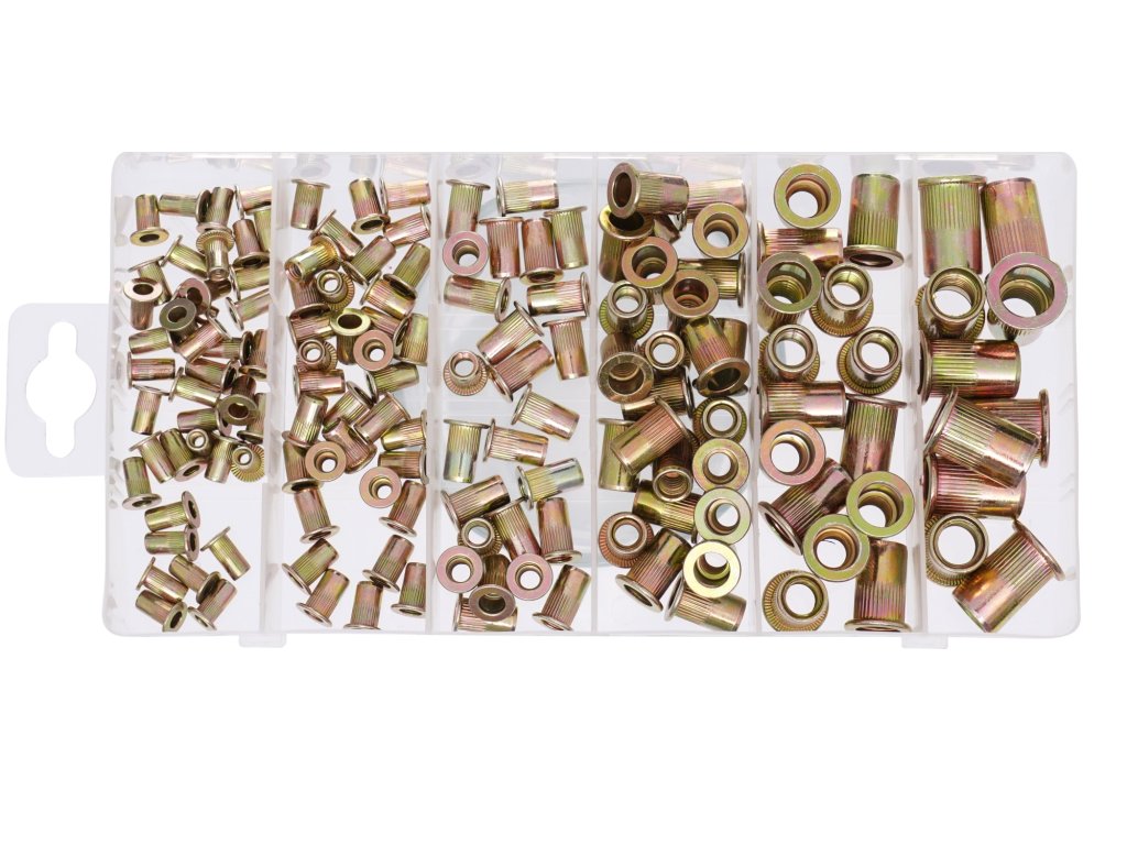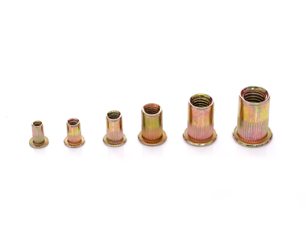 Jeklene nitne matice v velikostih M3 do M10 predstavljajo idealno rešitev za trdno in zanesljivo pritrditev. Te matice imajo valjasti rebrasti ovratnik, ki zagotavlja tesnejši oprijem na pritrjevan element, s čimer se izboljša stabilizacija.