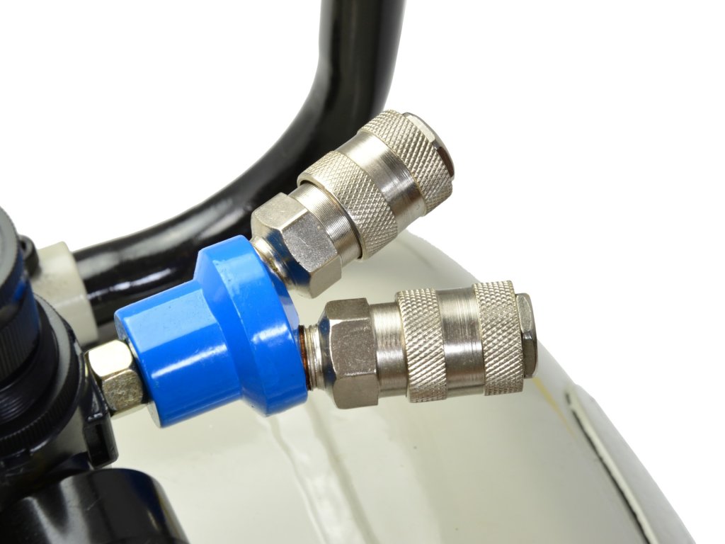 Kompresor je dodatno zasnovan za enostavno premikanje zahvaljujoč mobilni konstrukciji s kolesi. Ima redukcijski ventil z inovativnim regulacijskim mehanizmom, ki vključuje tudi velik manometer, nameščen za enostavno odčitavanje parametrov. Vgrajeni separator olja z reduktorjem tlaka učinkovito zadržuje vodo in olje v izpušnem zraku.