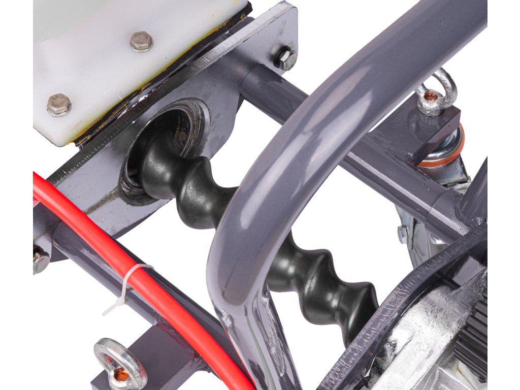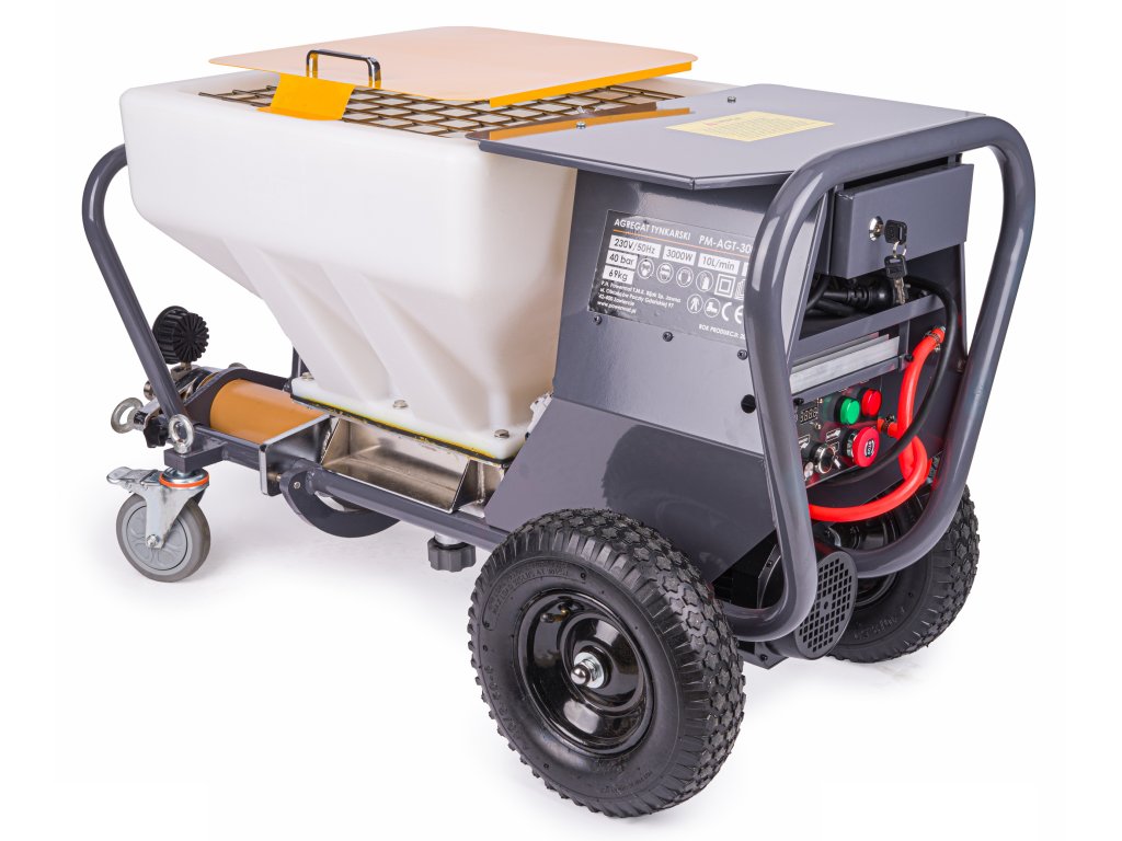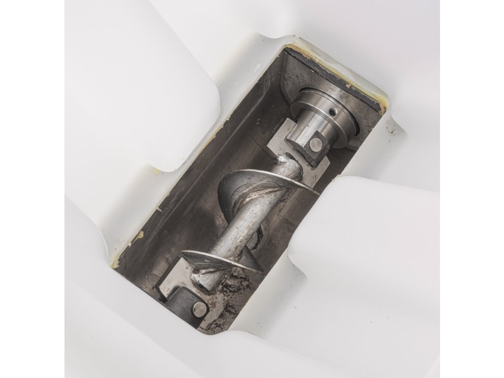 Močan vijak za vleko materiala, skupaj s kovinskim rezervoarjem z matico za hitro izpraznitev preostalega ometa in enostavno čiščenje.