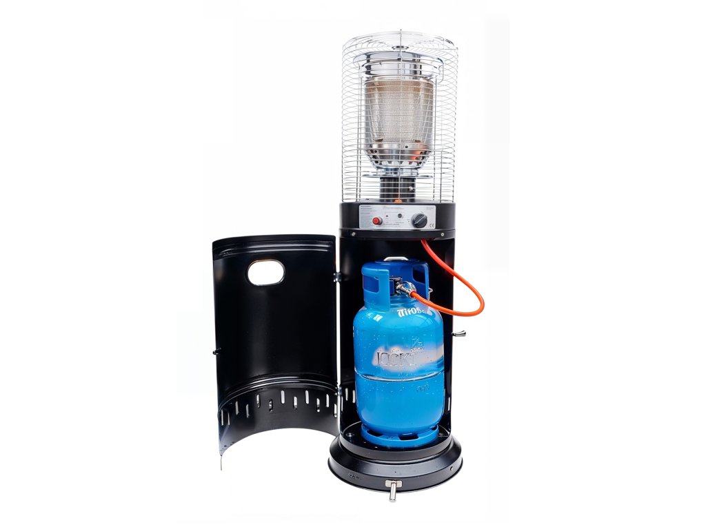 Grelnik je mogoče priključiti na 11 kg plinsko jeklenko s propan-butanom. V paketu je tudi plinska cev z reduktorjem, ki omogoča varno priključitev in takojšnjo uporabo.