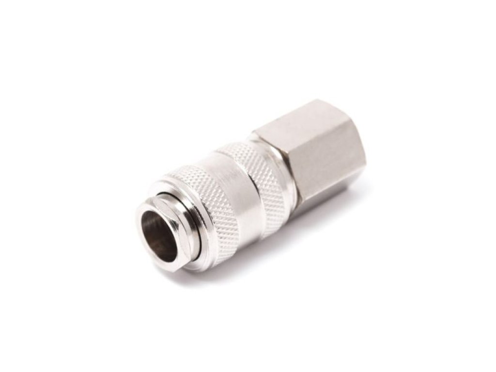 - Medenina pnevmatska hitra spojka z ventilom in notranjim navojem 3/8" zagotavlja zanesljivo in enostavno povezavo v pnevmatskih sistemih. Omogoča hitro in varno priklapljanje ali odklapljanje orodja ali drugih delov. Široko se uporablja v avtomobilski industriji, industriji nasploh in drugih panogah, kjer je zahtevano udobje in učinkovitost povezave. Omogoča varno povezavo pnevmatskih elementov, na primer cevi ali cevi.
