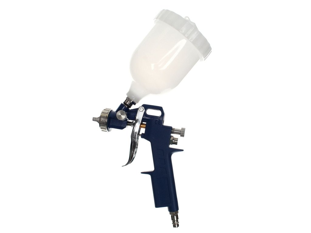 Pištola za barvanje z zgornjo posodo je idealna za natančno barvanje z metalnimi barvami, laki, akrilnimi barvami in vodno redčljivimi barvami. Odlično je primerna za avtomobilsko barvanje.