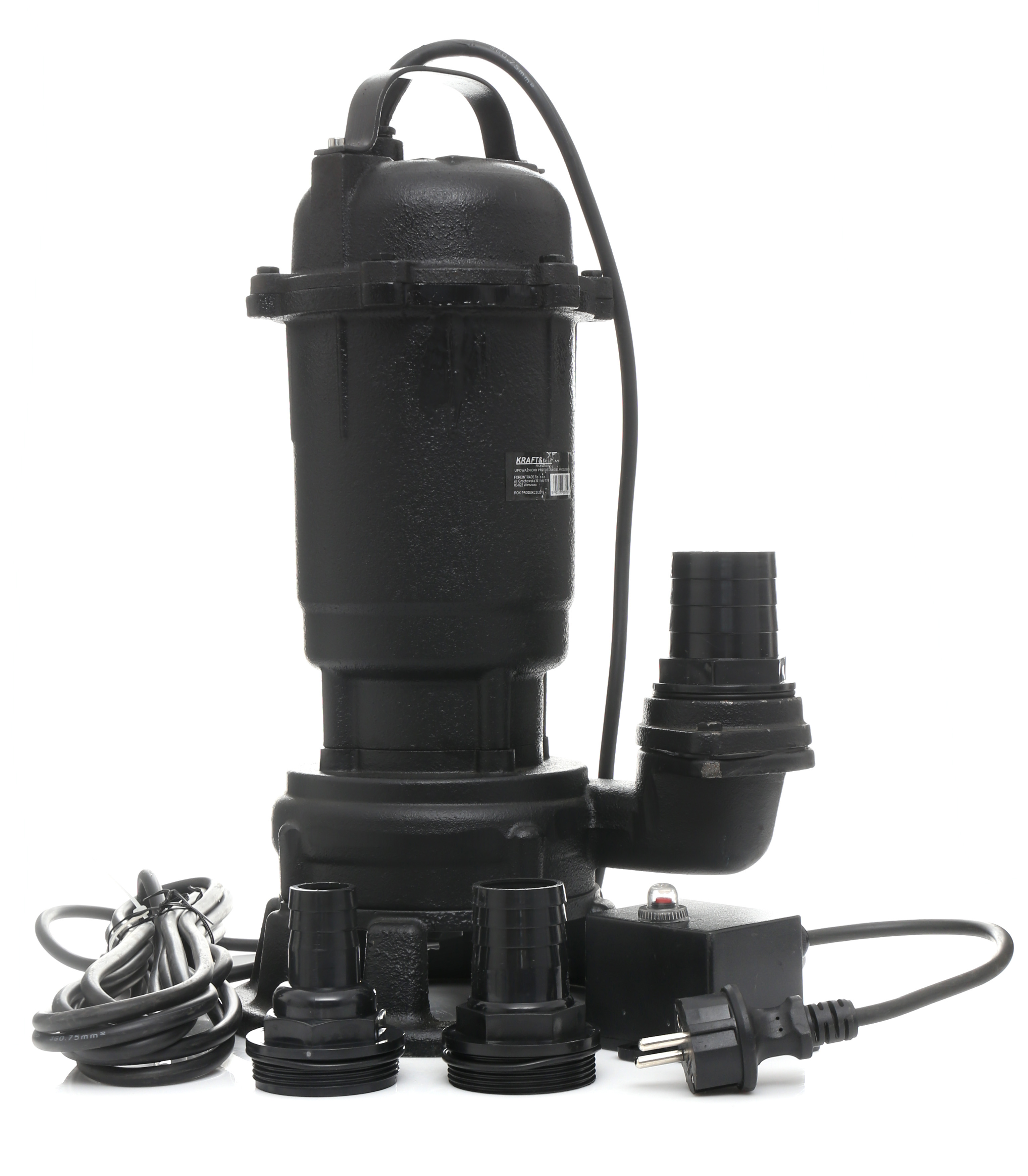 Potopna vodna črpalka z drobilnikom znamke KRAFT&DELE z največjo močjo 3200 W. Naprava ima visoko moč.