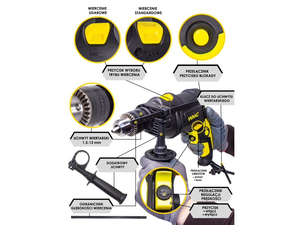 - Udarni vrtalnik 750 W z vpenjalno glavo in ključem
