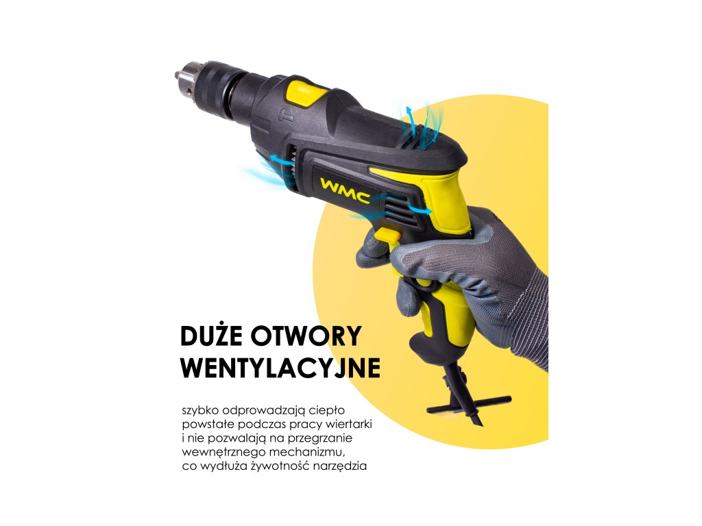 Vrtalnik z močjo 750 W z ergonomsko ročico omogoča natančno vrtanje v različnih vrstah materialov. Nepogrešljivo orodje v vsakem gospodinjstvu.