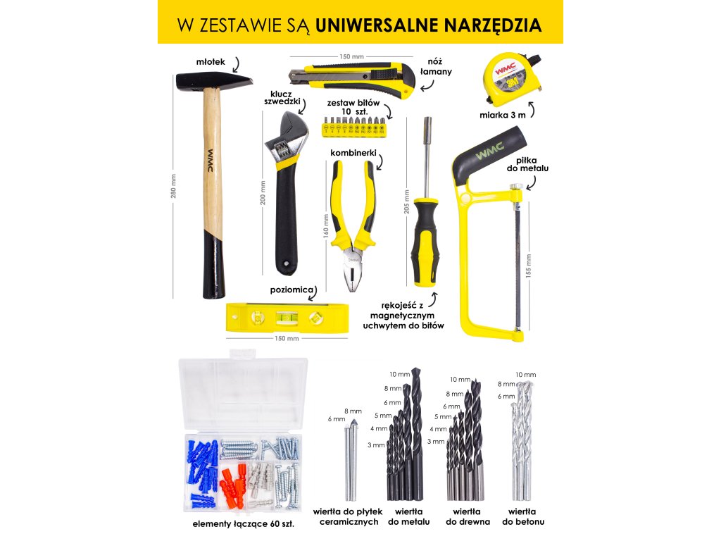 Značka WMC Tools je spolehlivým partnerem v oblasti ručního a elektrického nářadí, které kombinuje kvalitu, funkčnost a dostupnou cenu. Je navržena tak, aby splňovala potřeby profesionálních řemeslníků, servisních techniků, průmyslových provozů i domácích kutilů. Díky preciznímu zpracování, ergonomickému designu a použití odolných materiálů jsou produkty WMC Tools připraveny zvládnout i náročné úkoly.