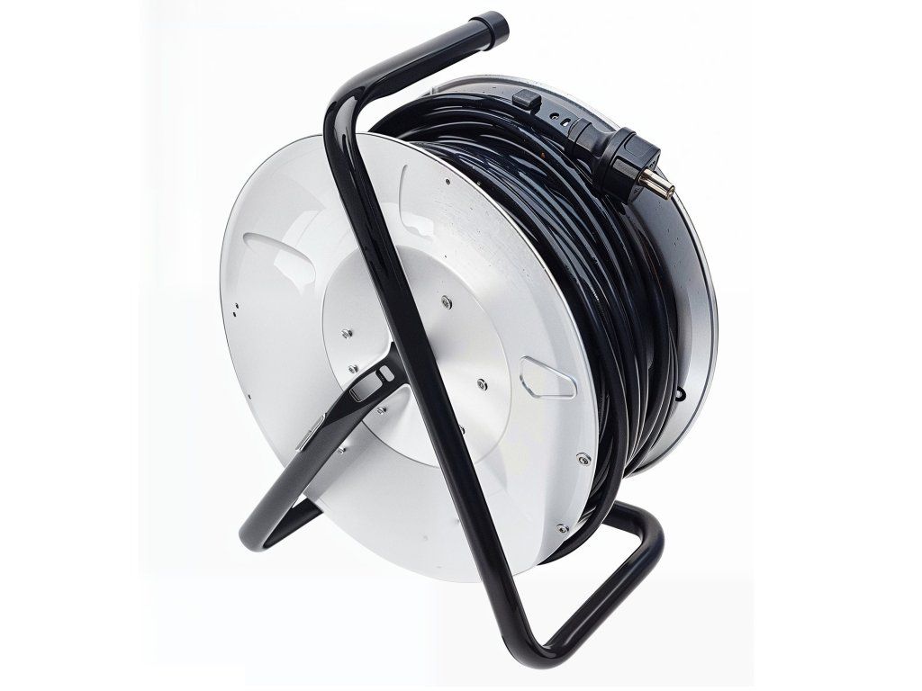 Podaljšek je opremljen z ozemljitvijo in stikalom, kar povečuje varnost in udobje uporabe. Največja obremenitev pri navitem kablu je 700 W, pri razvitju pa do 2300 W, kar omogoča napajanje širokega spektra električnih naprav.
