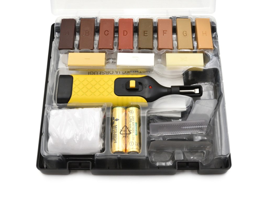 Komplet za popravilo lesenih površin je idealna rešitev za popravilo poškodb na panelih, pohištvu, vratih in drugih materialih, ki so podobni lesu. Ta komplet vam omogoča estetsko in cenovno učinkovito prekritje razpok, odlomkov in celo lukenj po vrtanju.