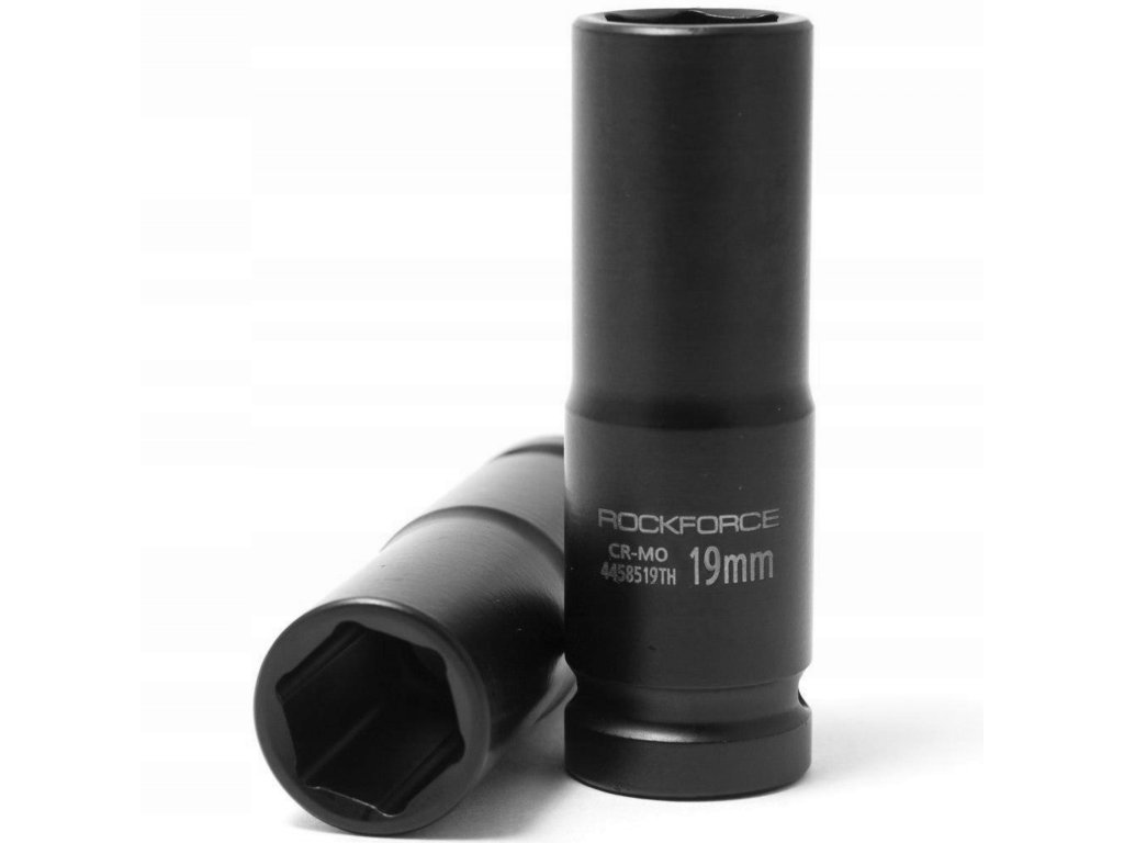 Udarni nastavek 1/2" 19 mm, šestkraten, globok, s tankimi stenami znamke ROCKFORCE je orodje višjega razreda, namenjeno profesionalni uporabi.