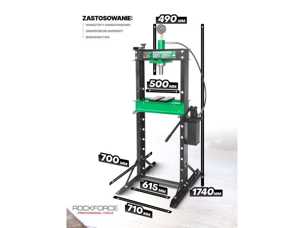 Znamka Rockforce je sinonim za moč, natančnost in zanesljivost. Hidravlični stiskalnik RF-20001 združuje elemente vrhunske naprave z dostopno ceno in ponuja profesionalno rešitev za zahtevne delavnice. Je orodje, ki ne razočara pri vsakodnevnem delu in vam zagotavlja popoln nadzor ter varnost pri najtežjih nalogah.