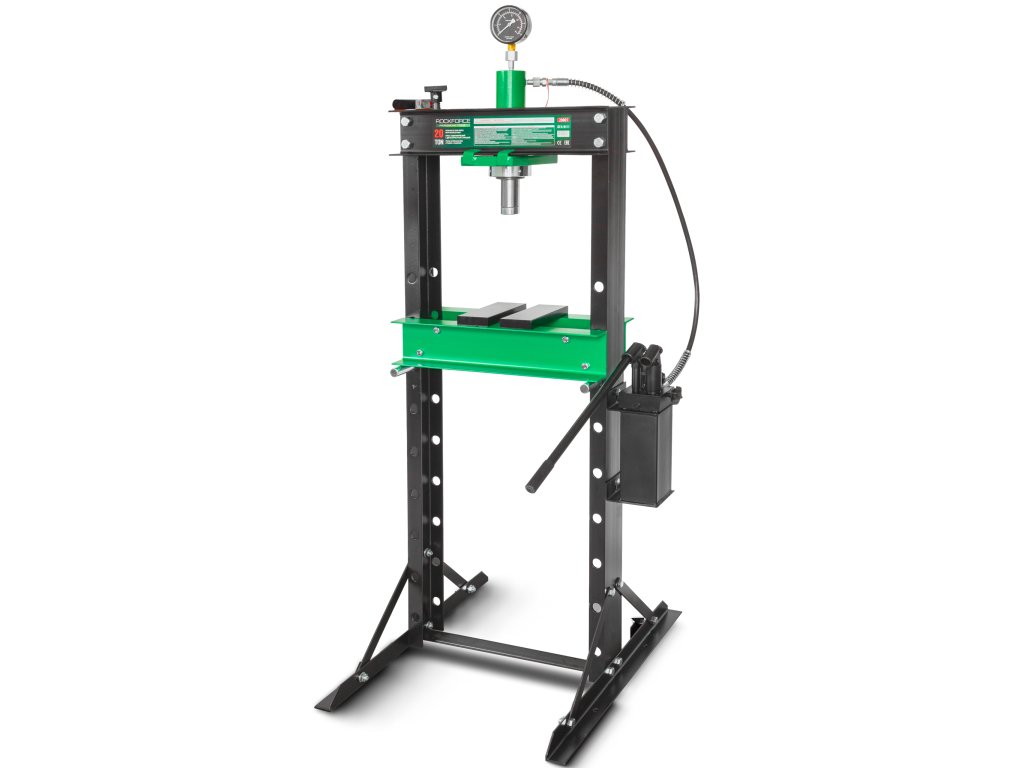 ROCKFORCE hidravlični delavniški stiskalnik 20 t s hidravlično črpalko in manometrom, vključno s podporni bloki