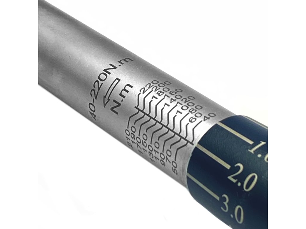 - Brušena, trpežna lestvica navora (metriki Nm in palčni FLT) na ročaju – odporna proti obrabi in berljiva tudi po letih uporabe.