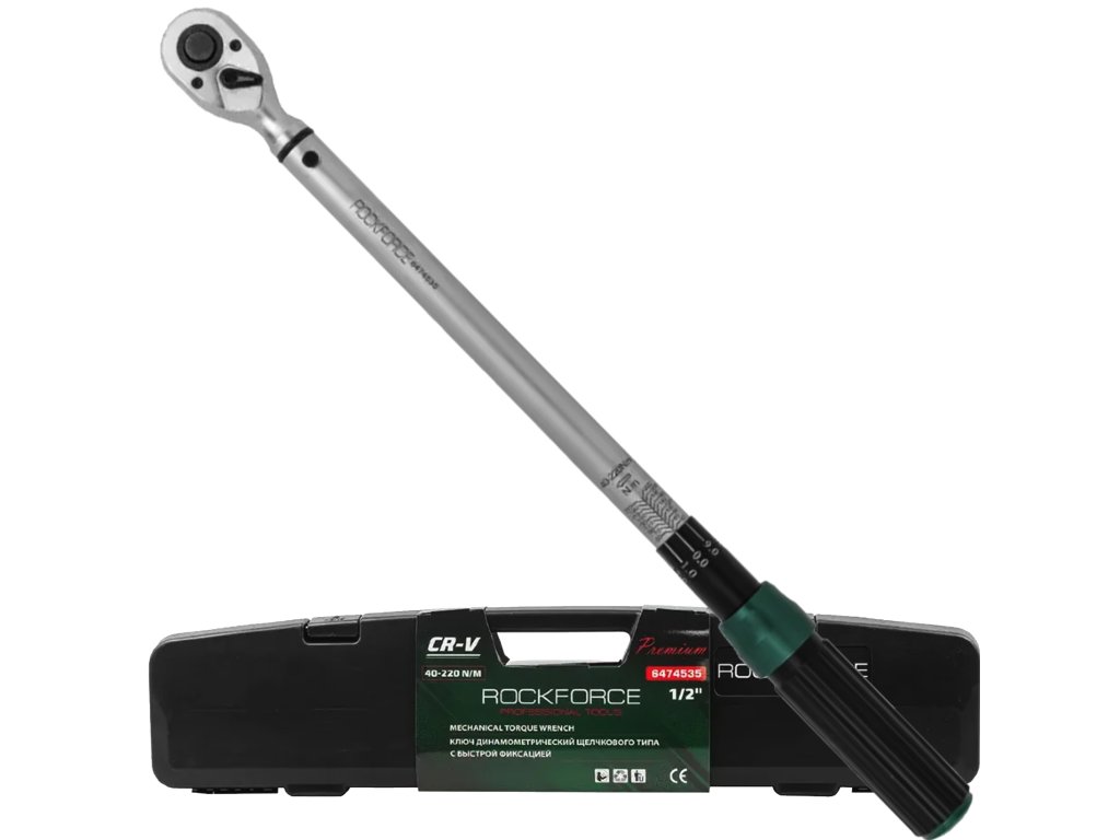 ROCKFORCE momentni ključ z zaklepom in certifikatom, 40–220 Nm, 1/2"