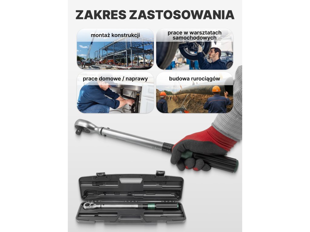 Zaradi širokega območja navora je ključ primeren za večino servisnih in delavskih opravil: