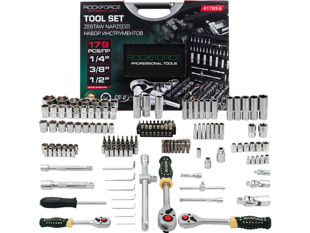 ROCKFORCE komplet orodja 179 delov, šesterokotni nasadni ključi 1/4", 3/8", 1/2"