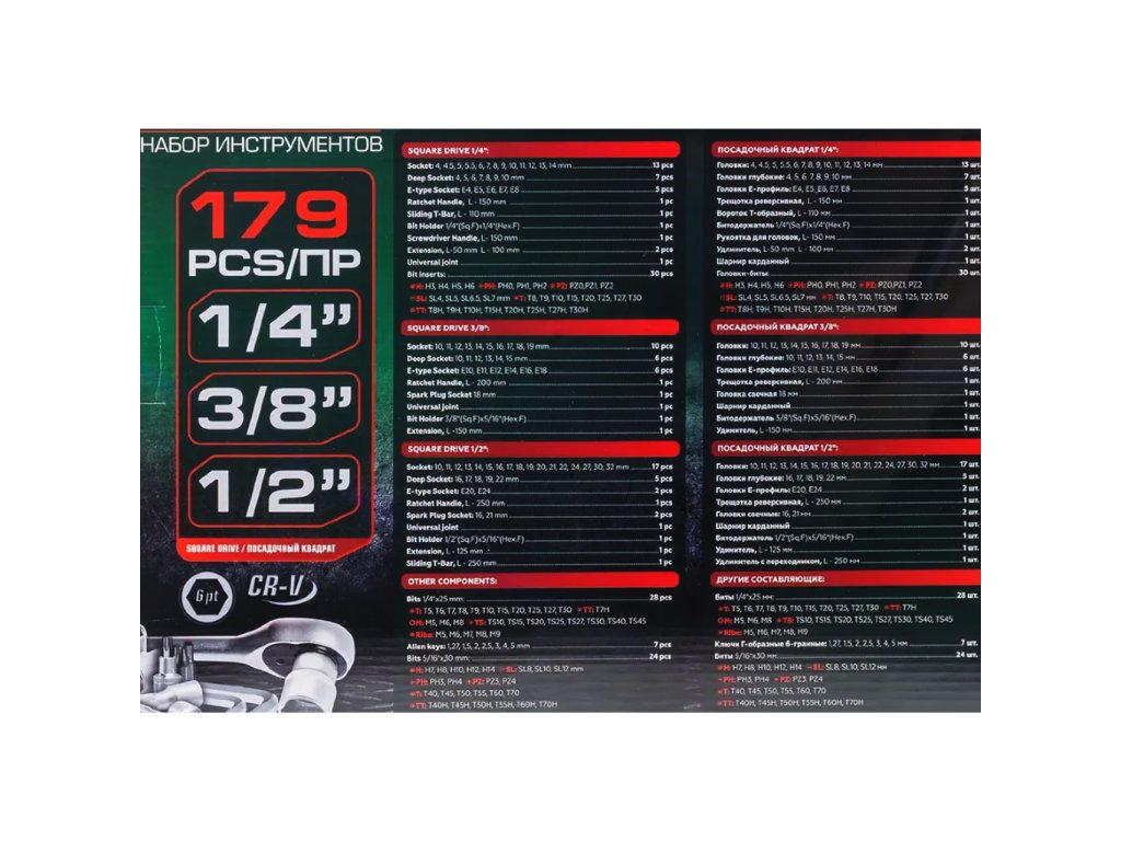 ✅ 179 delov v treh vpenjanjih: 1/4", 3/8", 1/2"