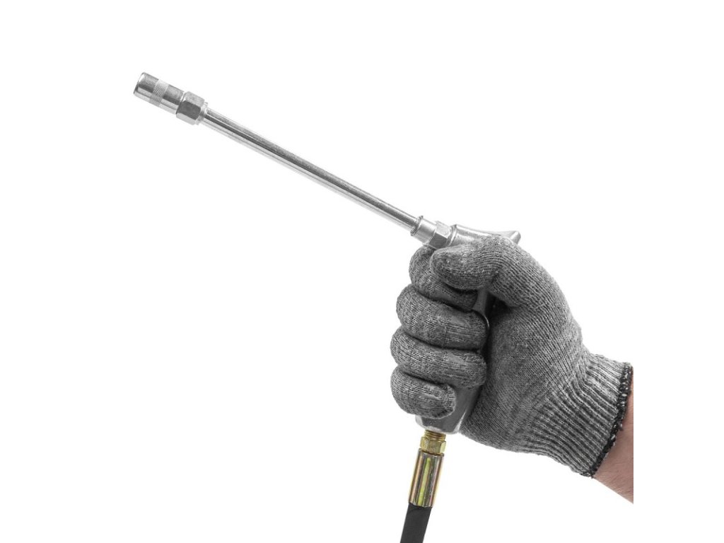 Naprava služi za mazanje delov podvozja in sklepnih spojev pri tovornih in osebnih vozilih ter drugih strojih pri popravilih in vzdrževanju mehanizmov in agregatov. Z njim zagotovite zanesljivo prekrivanje stičnih delov z ustreznim slojem maziva.