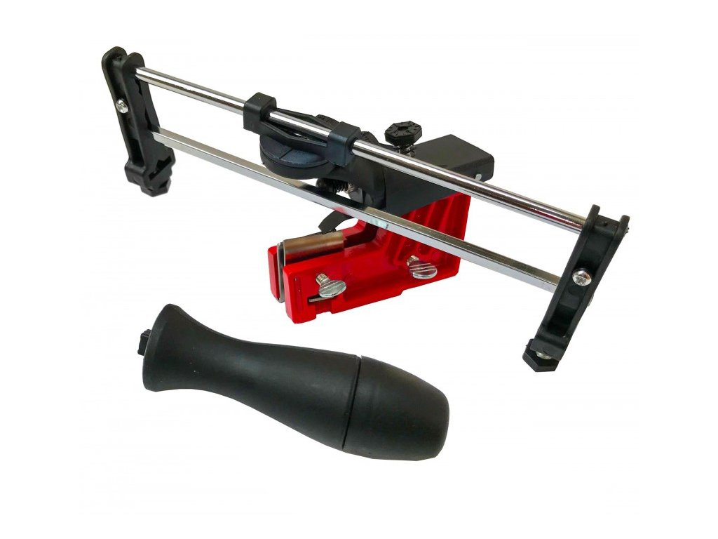 Okvirni brušilec za verige DEGET je naprava namenjena ostrenju verig motornih in električnih žag, ki se montira neposredno na vodilno letvico žage. Omogoča enostavno in učinkovito ostrenje verig. Potrebno je le, da v brusilno napravo vstavite pilnik, primeren za vašo verigo, nato pa jo namestite na vodilno letvico žage, da postopoma naostrite vsak rezalni zob z gibanjem račnega brusilnega pripomočka naprej in nazaj.