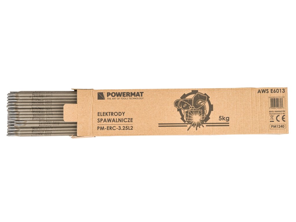 Elektrode Powermat so na voljo v praktični embalaži težine 5kg. Ta količina elektrod zagotavlja učinkovitost in uporabnikom nudi zadostno količino materiala za varjenje pri enkratnem nakupu, kar predstavlja praktično in ekonomično izbiro.