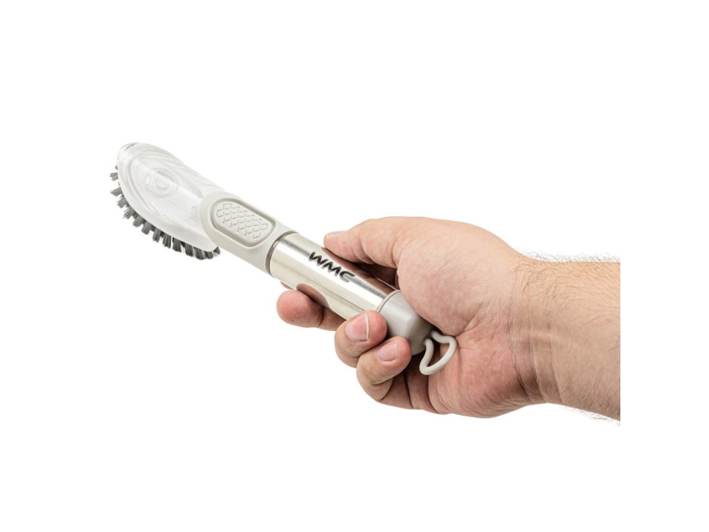 Kuhinjski čopič z dozirnikom tekočine WMC TOOLS olajša in pohitri pomivanje posode. Čopič z dozirnikom in 4 zamenljivimi nastavki je nepogrešljiv pomočnik v vsakem gospodinjstvu.