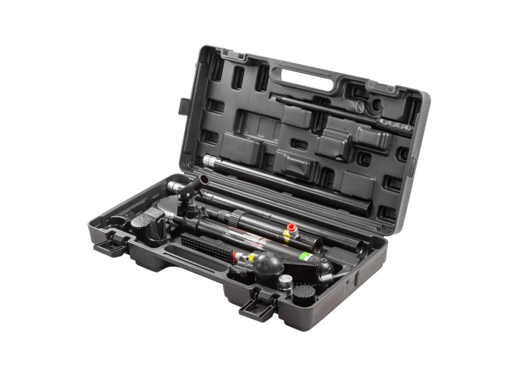 Komplet vsebuje hidravlično črpalko, valje, podaljške in ukrivljene nastavke. Lahko ga dopolnite tudi s hidravličnim valjem z obratnim tokom in objemčnimi nastavki.