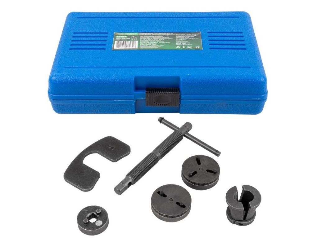 - Komplet se uporablja za povečanje prostora po odstranitvi zavornih ploščic tako, da potisne bat zavorne čeljusti. Nepogrešljiv pri popravilih disk zavor.