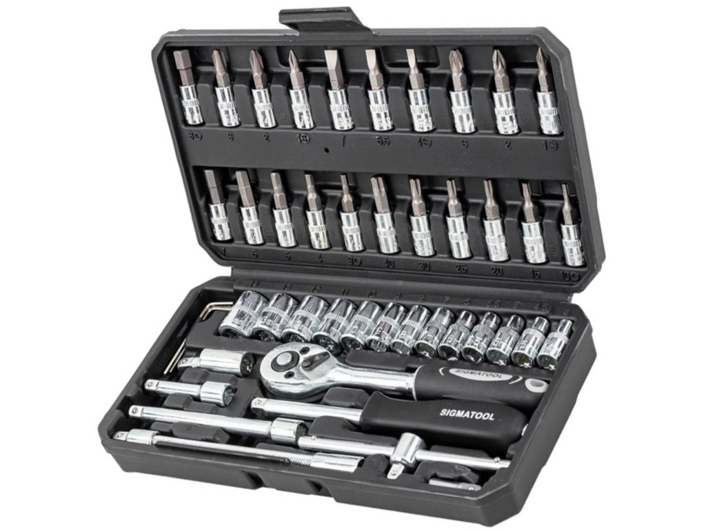 Dopolnjujejo ga podaljški (vključno z upogljivim), kardanski sklep, imbus ključi, T-ročaj in držalo za nastavke. Vsi deli so pregledno urejeni v praktičnem kovčku.