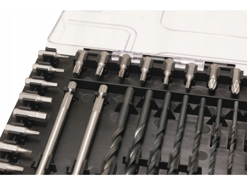 - 46 kosov nastavkov 25 mm: SL 3-4-5-6-7, PH 1-2-3, PZ 1-2-3, S 1-2-3, H 2-3-4-5-6 mm, T 10-15-20-25-27-30