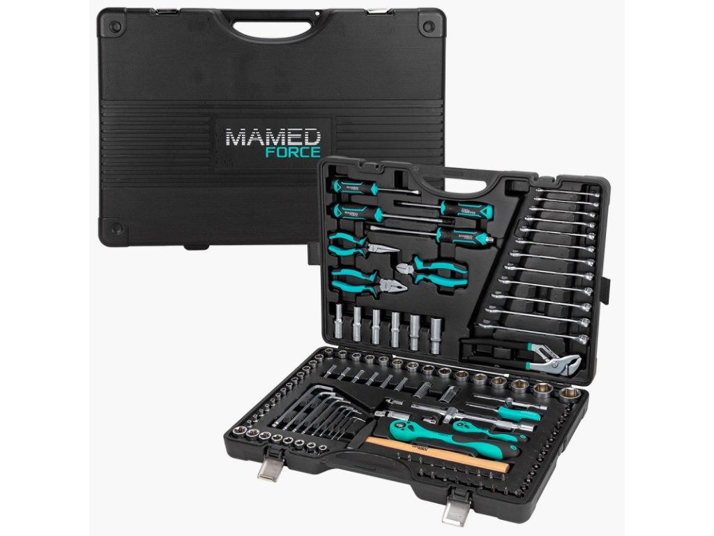 Komplet orodja 122 delov v kovčku – račna, nasadni ključi in ključi