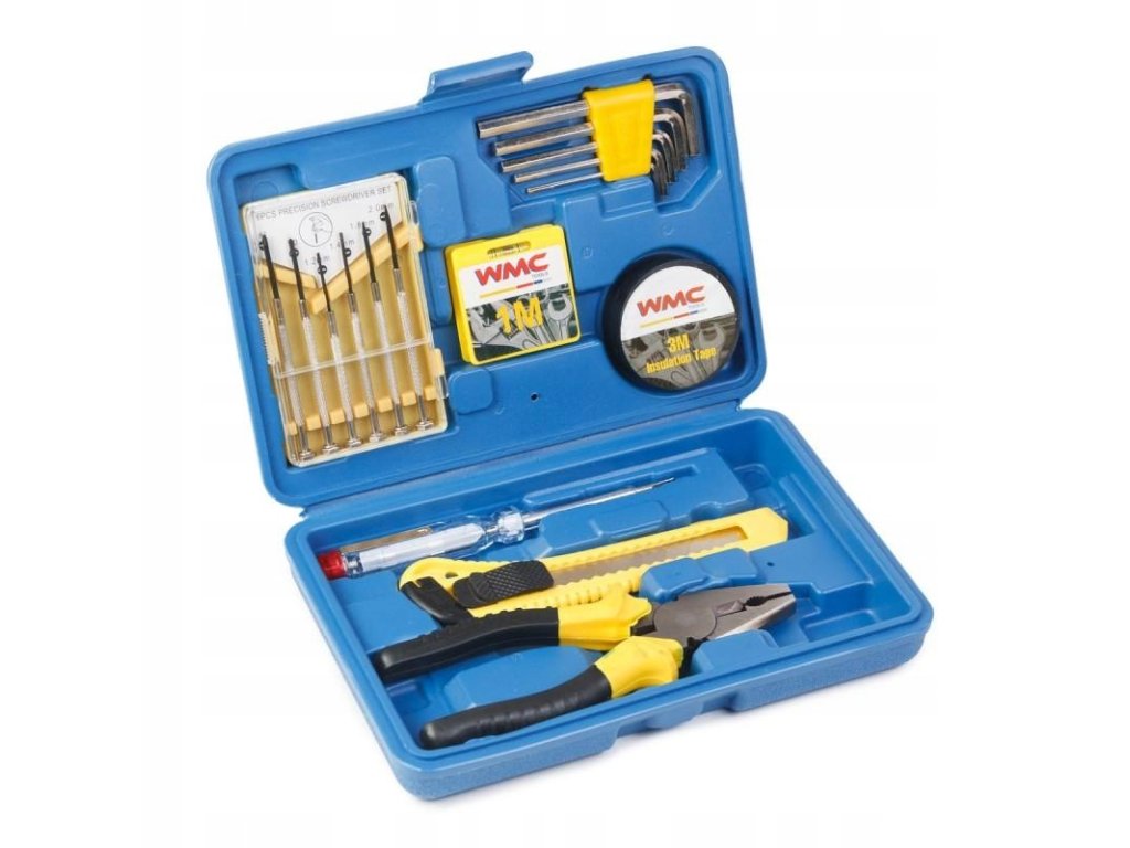Funkcionalni komplet vsebuje najnujnejša orodja, potrebna v vsakem gospodinjstvu ali delavnici.