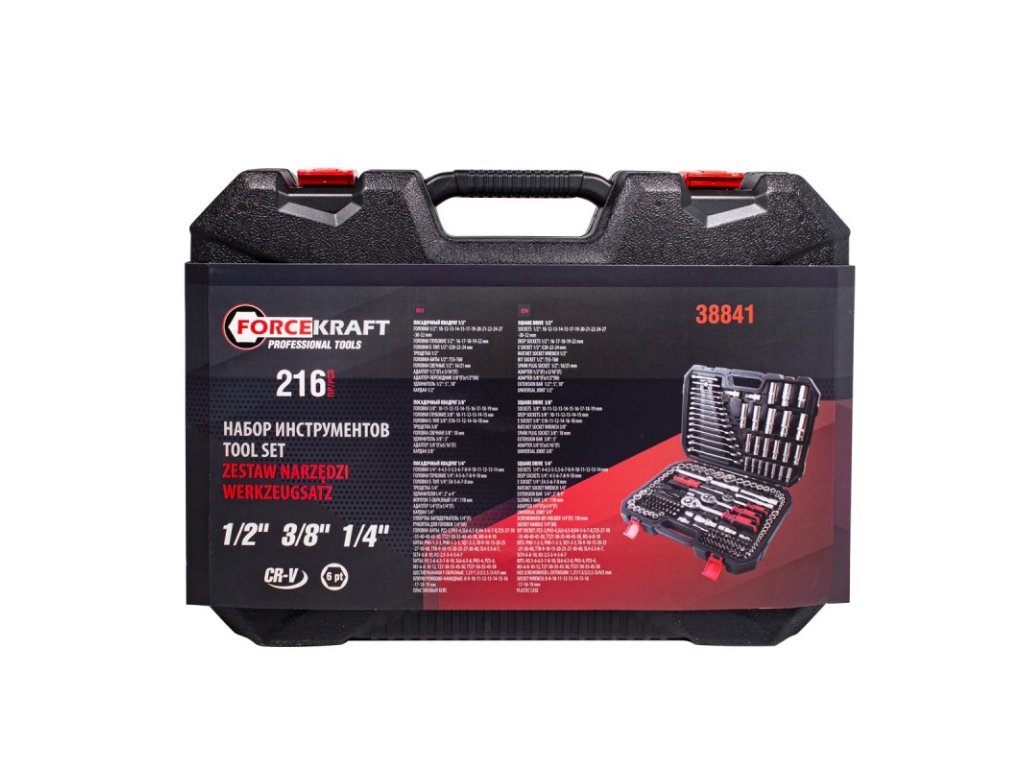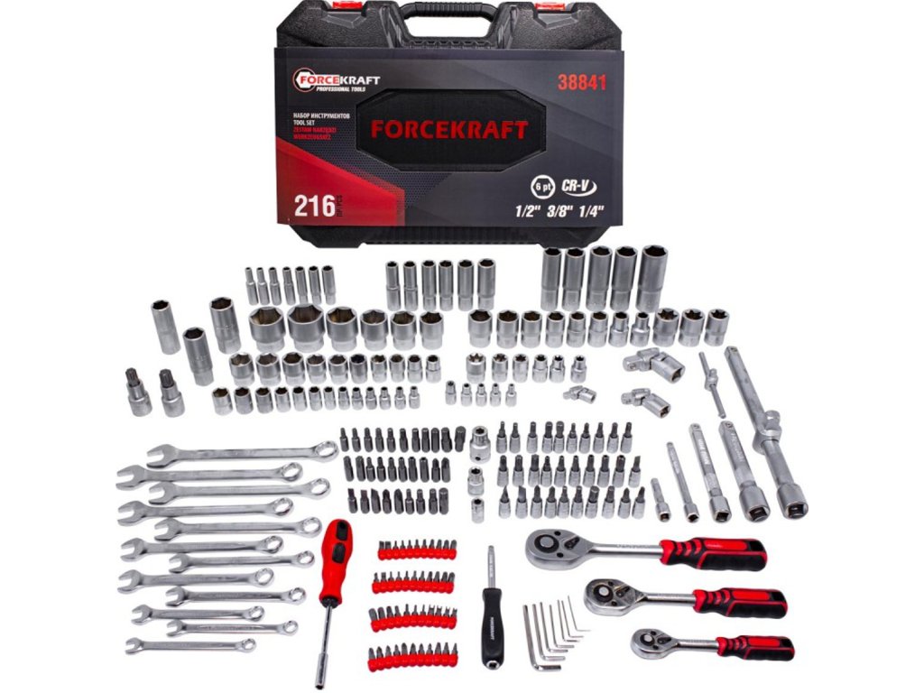 Komplet orodja 216 kosov v kovčku – nasadni ključi, ključi in nastavki