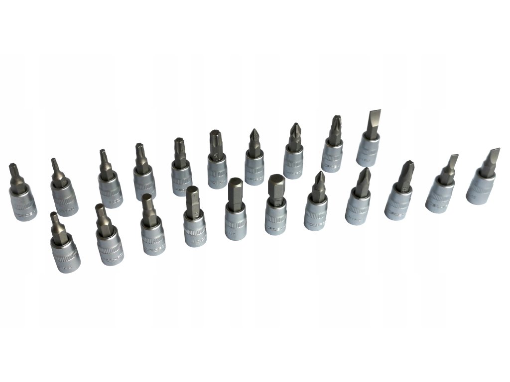 - Vsebuje: nasadne glave, nastavke TORX/HEX/PH/PZ/ravne, račna, podaljške (vključno s fleksibilnim), kardanski sklep, T-ročaj, adapter, imbus ključe