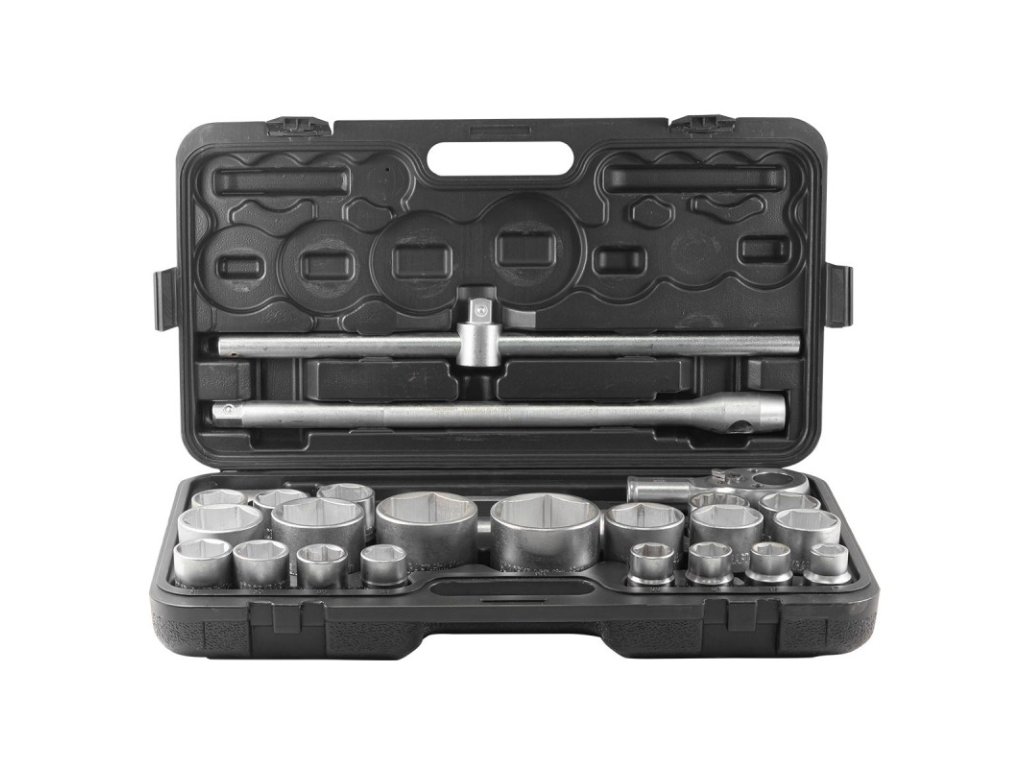 - Šesterokotne nasadne glave 3/4" – 17 kosov: 17 mm, 19 mm, 21 mm, 22 mm, 24 mm, 27 mm, 30 mm, 32 mm, 33 mm, 34 mm, 35 mm, 36 mm (12-kraka), 38 mm, 41 mm, 46 mm, 50 mm
