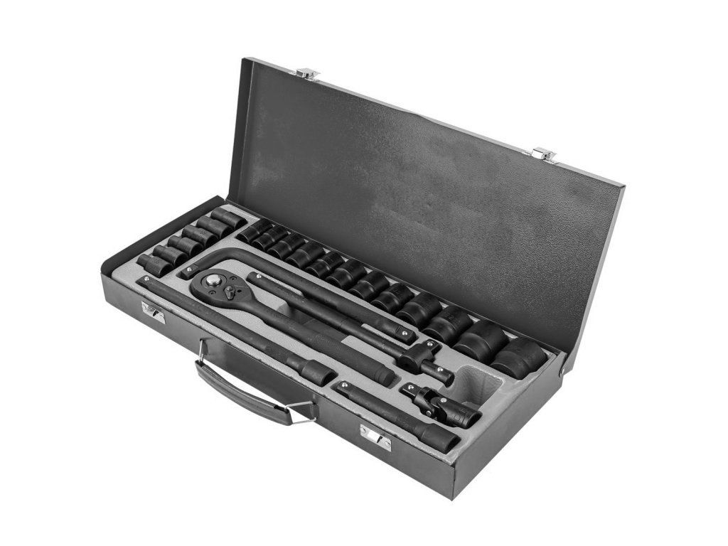 Komplet udarnih nasadnih glav s račnom 1/2", 8–32 mm, 24 kosov