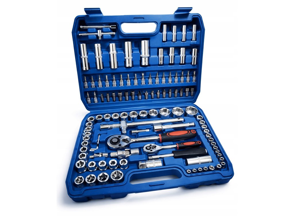 Popoln in univerzalen set nasadnih ključev s 108 kosi je zasnovan za širok spekter uporabe od domačih popravil do profesionalnih delavnic. Zaradi kakovostne krom-vanadijeve jeklene zlitine nudi visoko trdnost, dolgo življenjsko dobo in odpornost proti obrabi. Bogata oprema, vključno z nastavki TORX, bitnimi nastavki, podaljški in dvema račnama, zagotavlja popolno prilagoditev za vsakršno delo. Vse je shranjeno v praktični kovčku, ki orodje ohranja pregledno urejeno in enostavno prenosljivo.