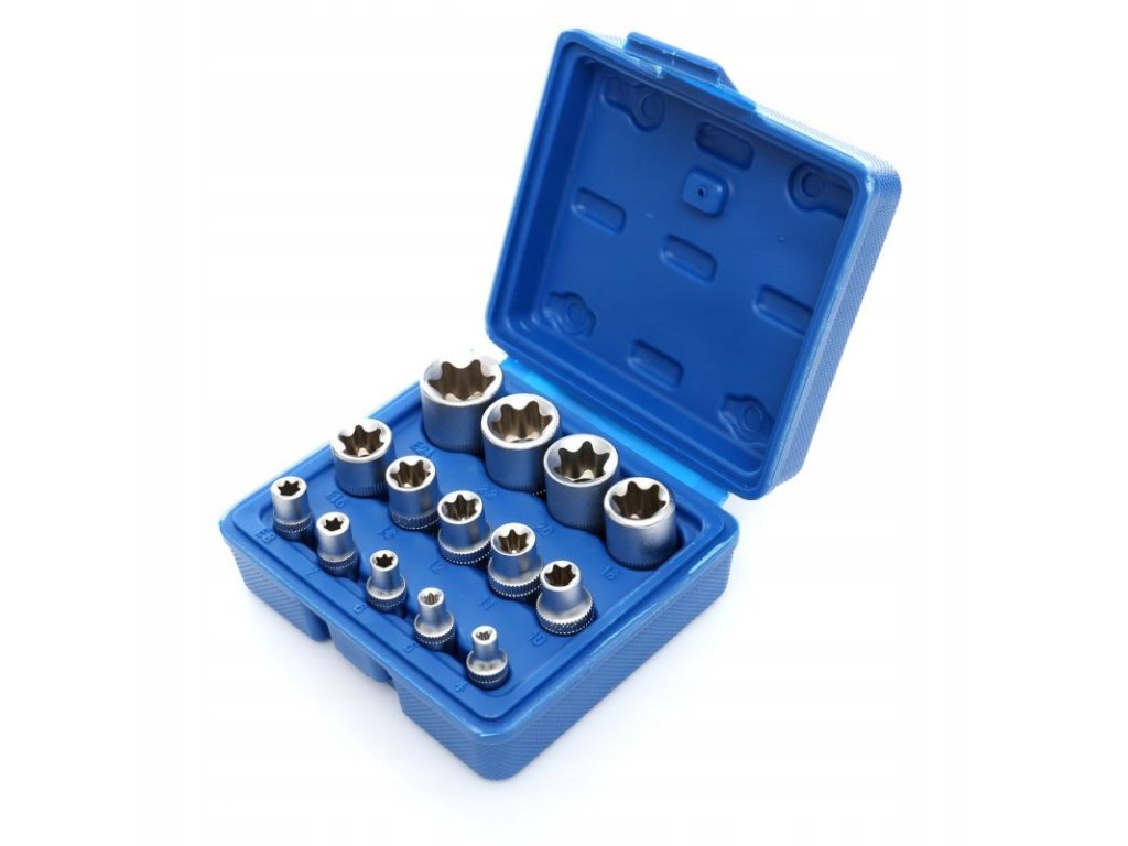 Komplet nasadnih ključev TORX z dimenzijami 4–24 mm vsebuje 14 kosov nastavkov iz kakovostnega materiala, ki so idealni za uporabo z račnami različnih velikosti pritrditve. Ta univerzalni komplet je nepogrešljiv pomočnik za vsakega mehanika, tako v delavnici kot doma. Vse je pregledno urejeno v trpežnem plastičnem kovčku, ki olajša shranjevanje in prenašanje.