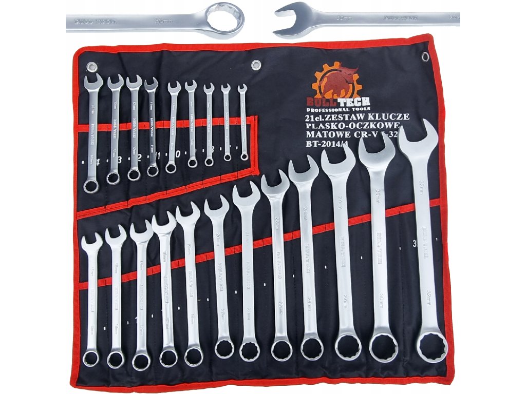 Komplet ravnih obročastih ključev 6–32 mm – 21-delni s tekstilno embalažo