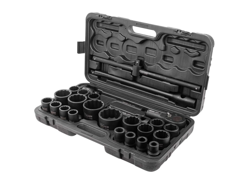 Set udarnih 12-krakih nasadnih ključev 3/4", 17–65 mm, 26 kosov, v kovčku