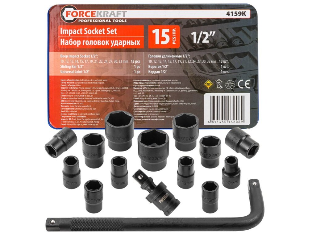 Komplet udarnih udarnih nasadnih glav 10–32 mm 1/2"
