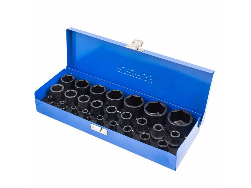 Set udarnih nasadnih ključev 25 kos, 1/2" in 1/4", šestkotni, 4–32 mm, v kovčku