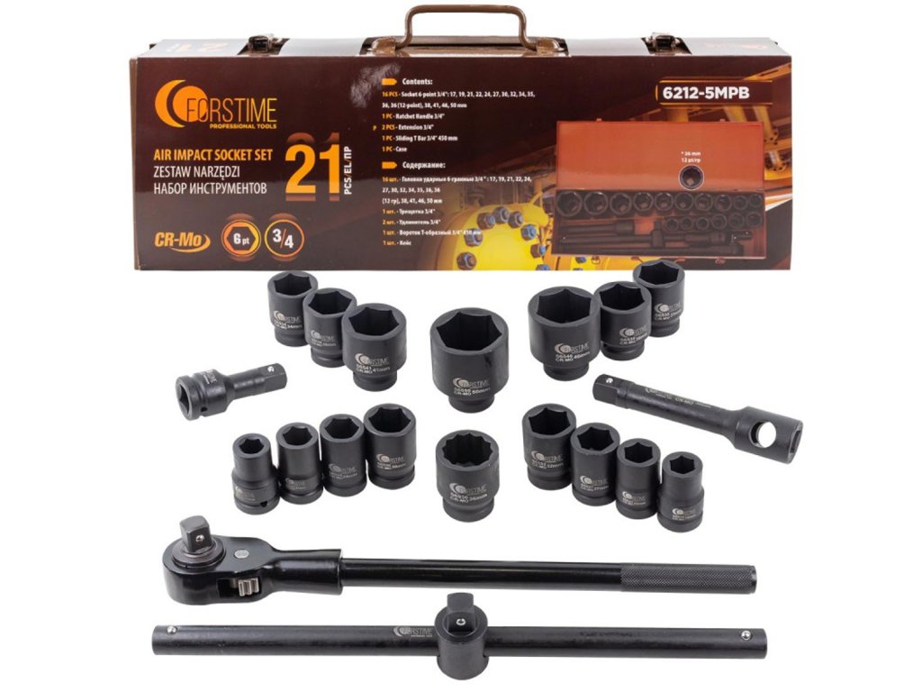 Komplet udarnih nasadnih ključev 3/4" 21 kos, šestkotni, 17–50 mm, kovček